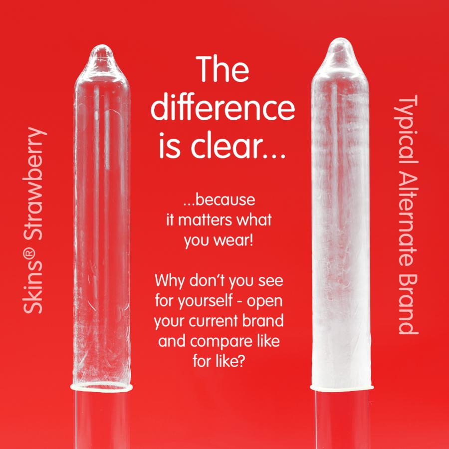 Presentamos nuestro nuevo pack de 8 con sabor a fresa, con un diseño elegante y listo para usar, y hasta un 33 % más de condones que el líder del mercado. Añade un clásico sabor afrutado a tu gama de productos con los condones Skins sabor fresa. Fabricados con látex natural de primera calidad para una sensación transparente y natural, estos condones están diseñados para brindar una sensación de segunda piel sin comprometer la resistencia ni la seguridad. Ideales para minoristas que buscan ofrecer una opción de sabor popular y confiable para una mayor intimidad y protección.
