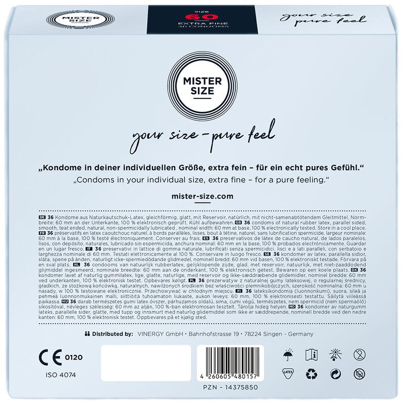 en un condón demasiado apretado. Pero ten la seguridad de que con MISTER SIZE 60 todo encaja perfectamente y puedes relajarte y concentrarte por completo en todo lo bueno. Así que disfruta del momento y vuela a alturas inesperadas.